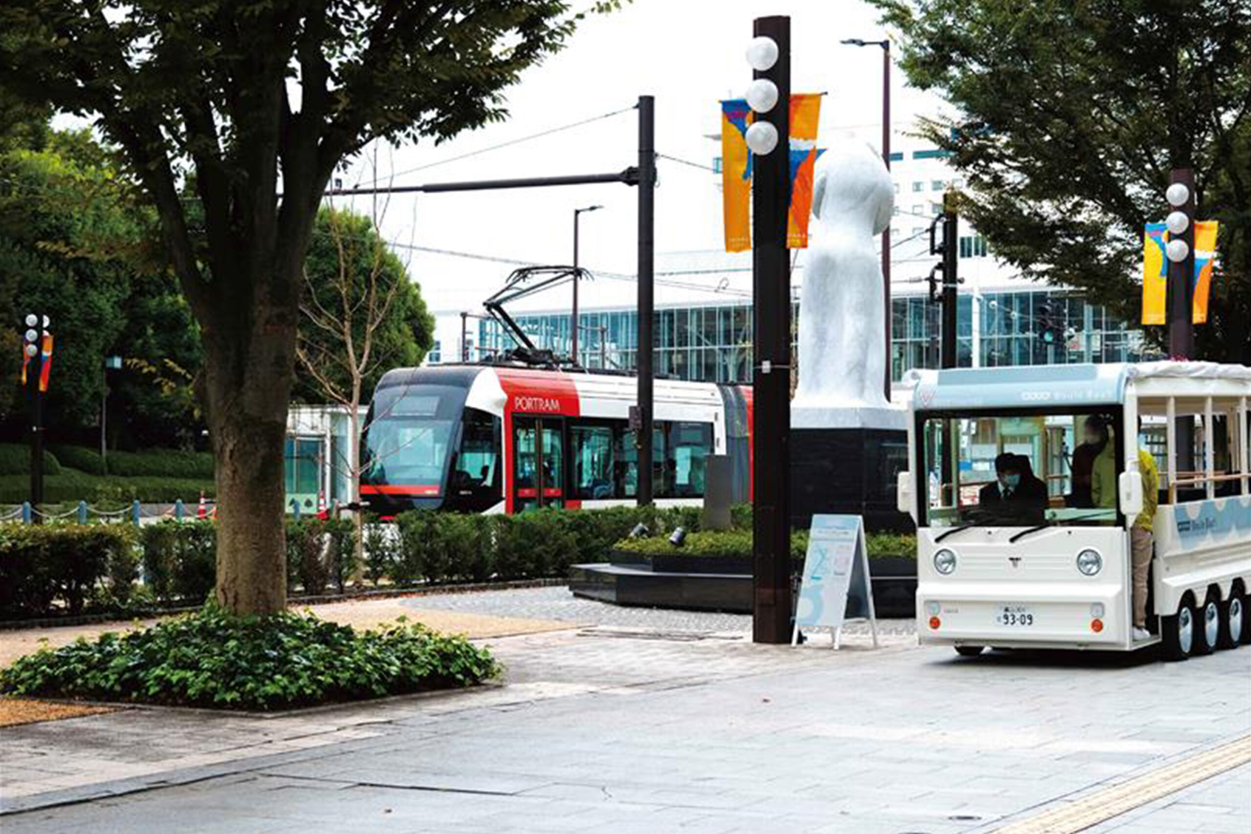 十分な広さをもつ歩道空間は、単なる通行にとどまらず、居場所やイベントなど多様な使われ方の可能性を秘めている。そのポテンシャルを一層引き出すために、今後、広場に面する建築側の設えが変化していくことを期待せずにはいられない。また現在、環水公園に至る経路の一部は未完成である。完成後に駅北口から環水公園、美術館までがどのように連携し、人の流れが形成され、活動に広がりがうまれていくのか、注視していきたい。(栃澤)