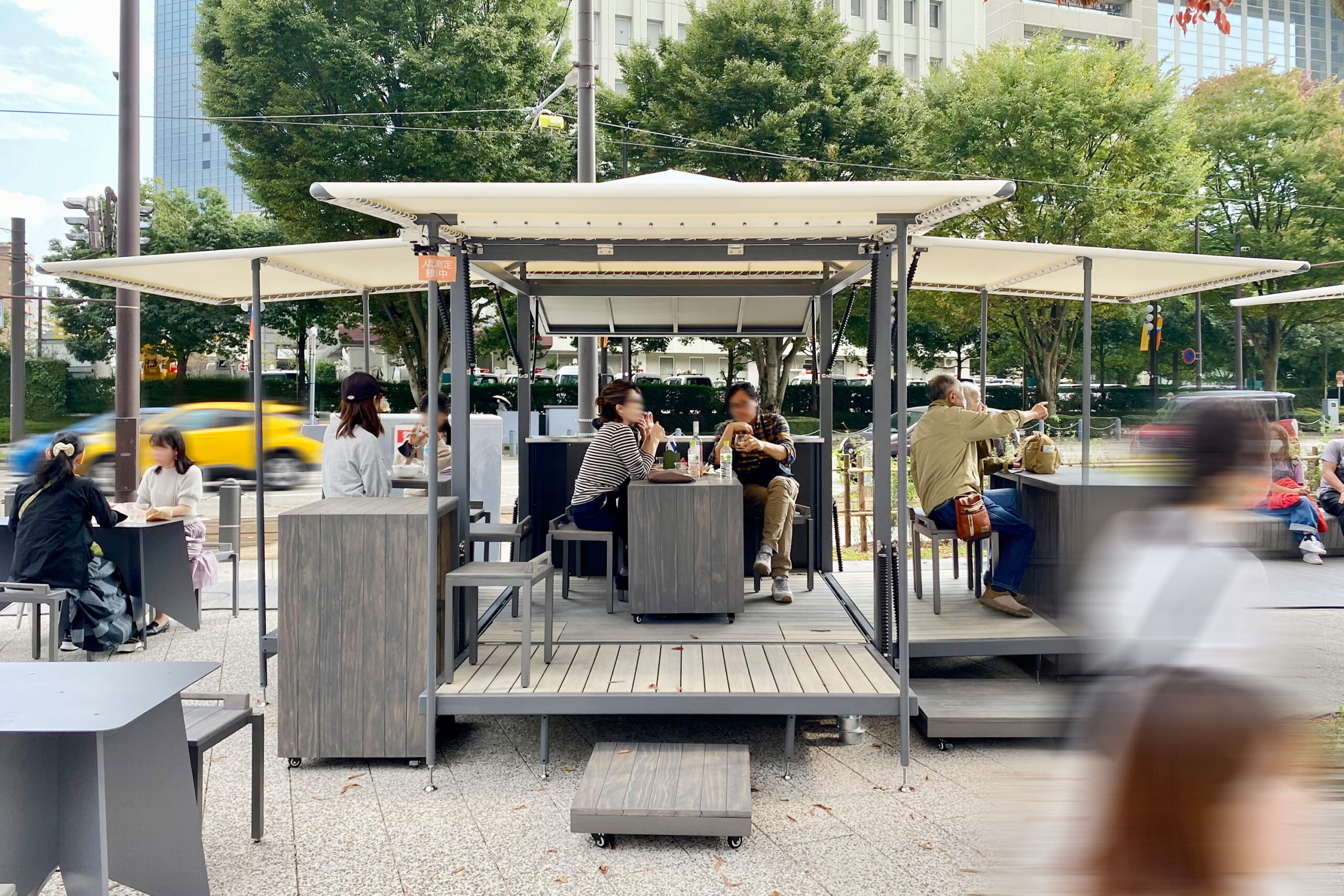 本広場は、広場条例を活用することで、通常の道路整備とは異なる新しい試みが可能となり、イベント活用を想定した沿道施設との連携した舗装計画、機能拡張を前提とした長尺ベンチや可動式日除タープ、ハイポール照明による夜間の回遊性向上、新概念のストリートファニチュアである箱ファニチュア、眺望を重視した橋上ベンチなどを整備し、公共空間の新しい使い方を実現した。