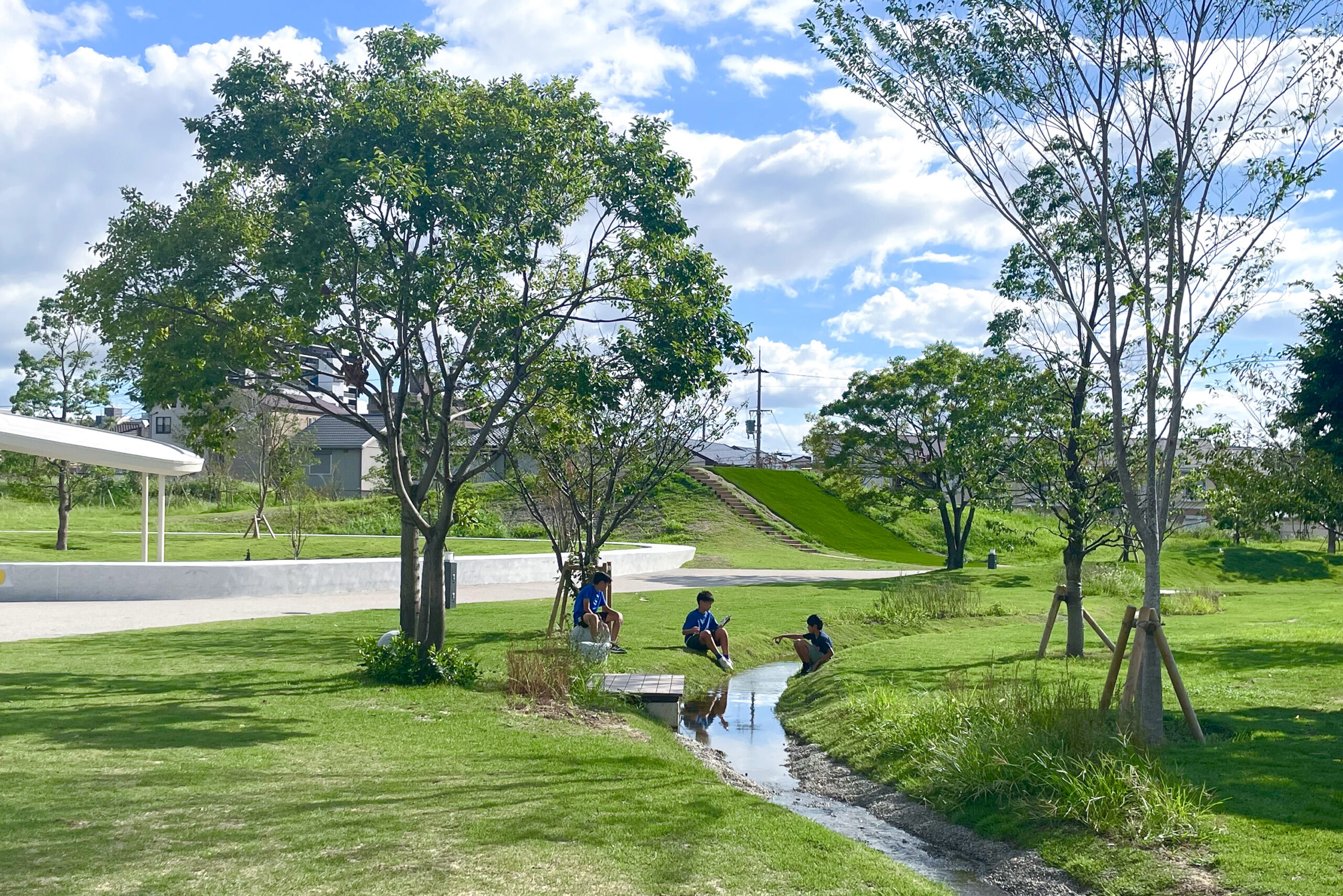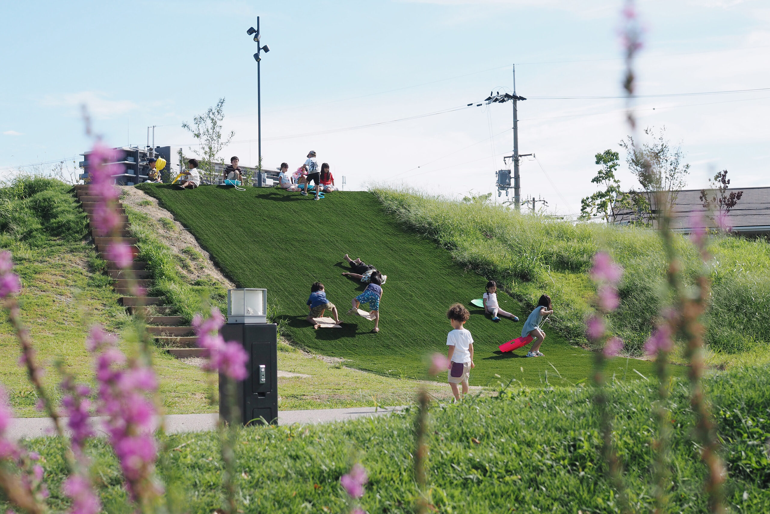 3つのデザインにより本公園は、多くの市民が利用する新たな憩いの場所として地域コミュニティの活性化に貢献している。