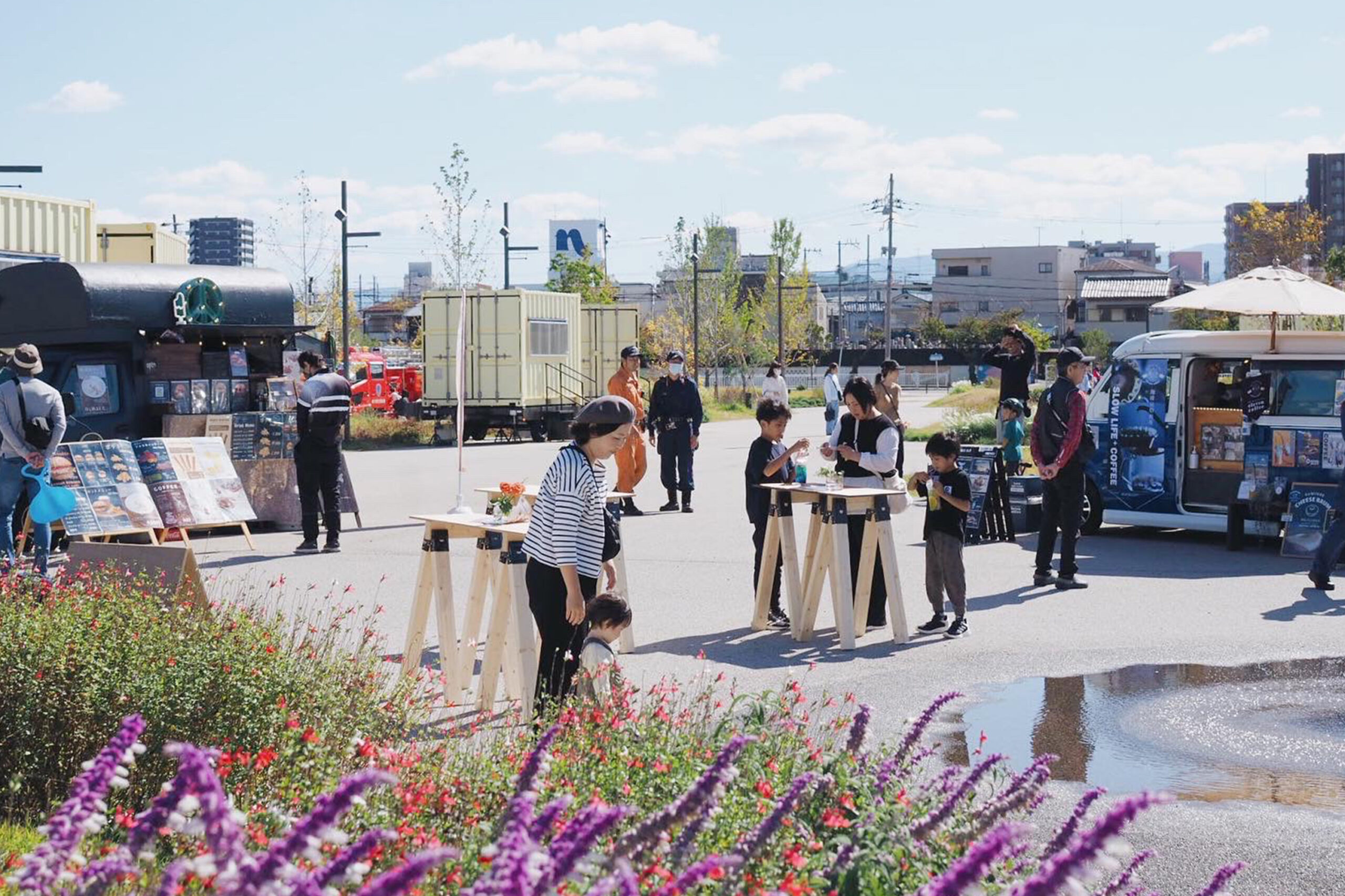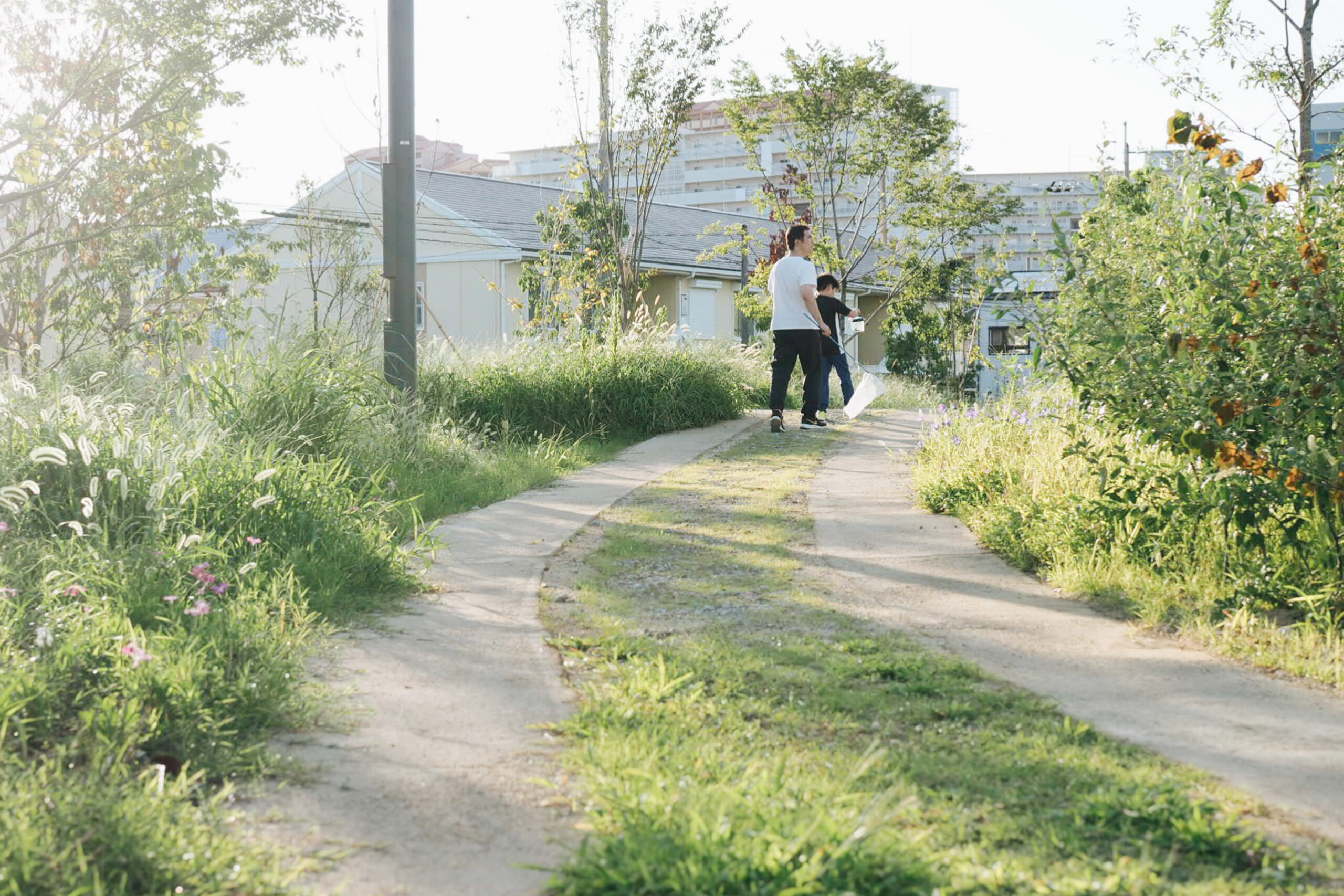 お彼岸の土曜日午後。お向かいに花屋と墓地があり、SHEEPATH PARKの広々とした駐車場を利用し墓参りをする方々の姿を目にしながら園内へ。翌日に催事を控えたお祭りプラザでは大型車両が進入し搬入作業をされていたが居場所はいつも通りで、子供同士、親子連れ、高校生グループが思い思いに過ごす。歩行者専用道でつながる円形スケートパークにも自然と足が伸び、ここが好きで遠方から来訪されているスケートボーダーの方とのおしゃべりが叶い有り難い。数は数十人かもしれないが、多様な属性、多様な居方を方々で目にする。それを支えるデザインの妙。歩きたくなる散策路を軸にちょい停めが叶う駐輪場の点在。縁や高低差を利用した座りたくなる居場所の点在。ふんわりと中心性があるため各々の姿が自然と目に入り安心でき時に微笑ましい。活動の強弱を促す植栽の手入れの加減が印象に残る。集中管理ではなく日々の営みとともに手入れもある感じというか。これからは植栽の状態にも地域の文化が現れるよう誘発する活動そのものも“土木デザイン”と呼べるのではないかと想像した。小学生が子供たちだけで戯れていた高架下のもんとパークとは紀州街道でつながりこれからが楽しみである。(山下)