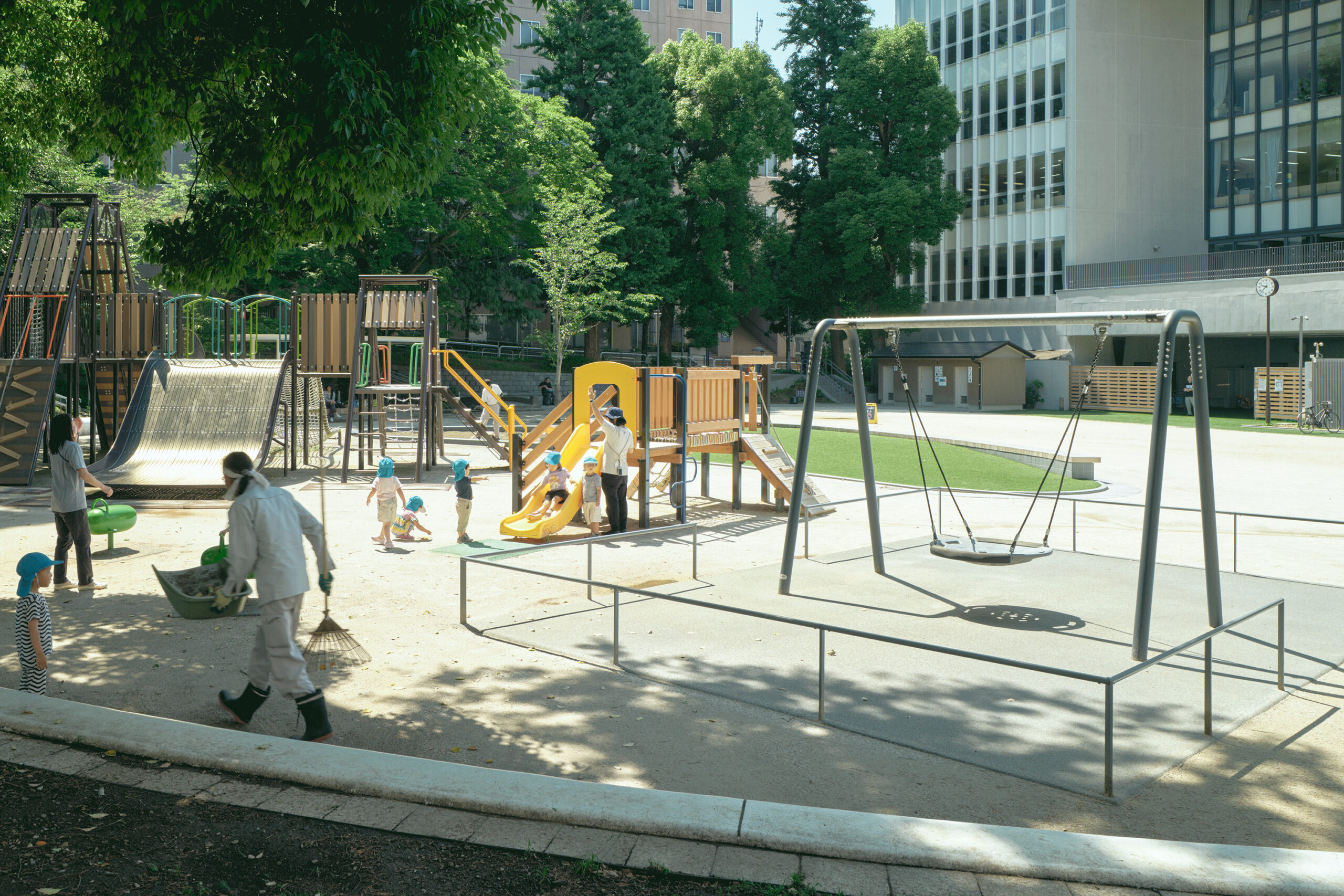 改修後は利用者も増加し、午前中は小さな子どもたち、日中はオフィスワーカー、午後は小学生、夜間には大学生と、千代田区らしい多様な世代による利用が見られ、日常の憩いの場として定着しつつある。